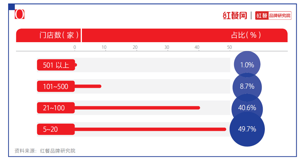 1.九成品牌门店数不足百家,规模化程度低